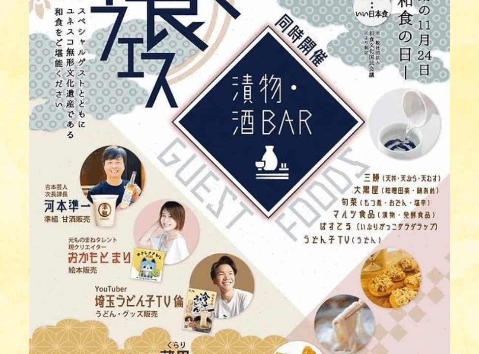 11月24日の「和食の日」に、川越市の小江戸蔵里で『和食フェス × 漬物・酒BAR』が開催されます!