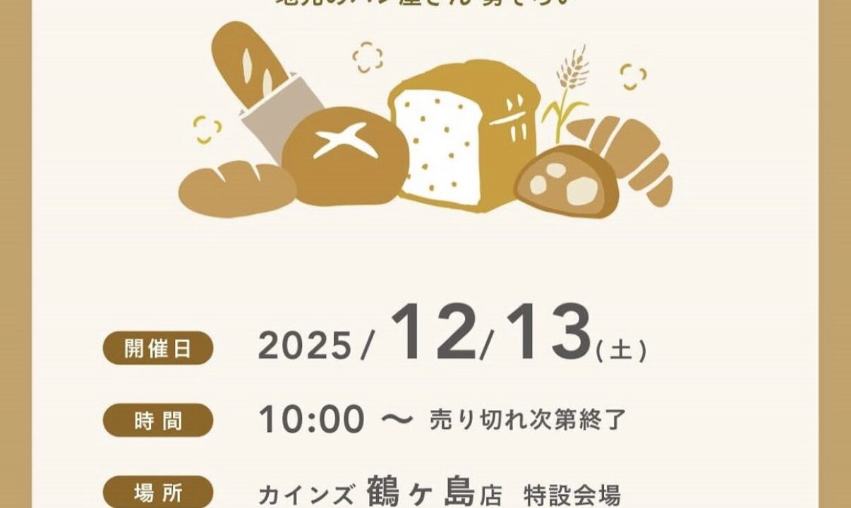 今回は、カインズ 鶴ヶ島店で開催される「くみまち パンマルシェ」の情報です。