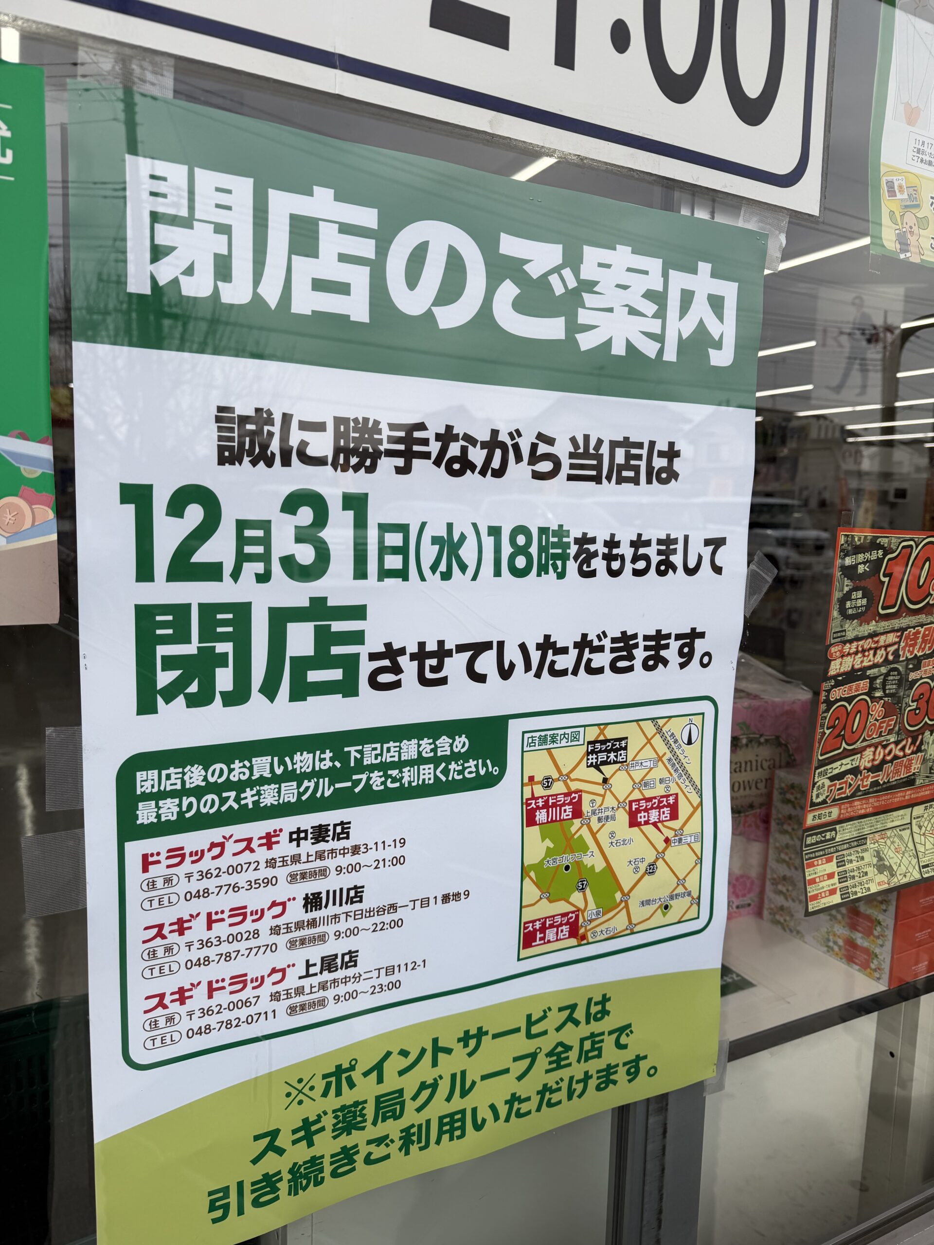 【上尾市】残念ながら「ドラッグスギ 井戸木店」が閉店となる事がわかりました!