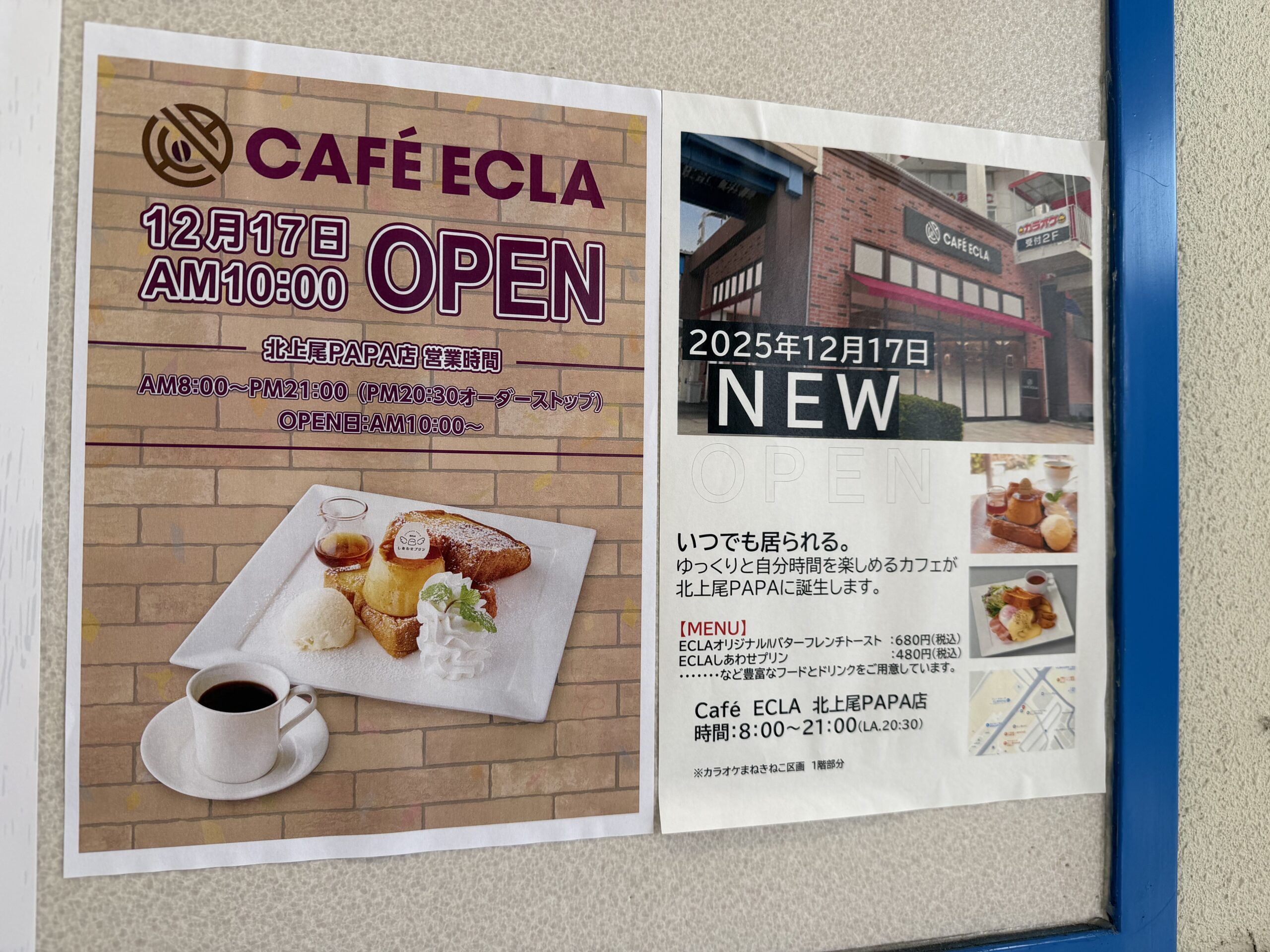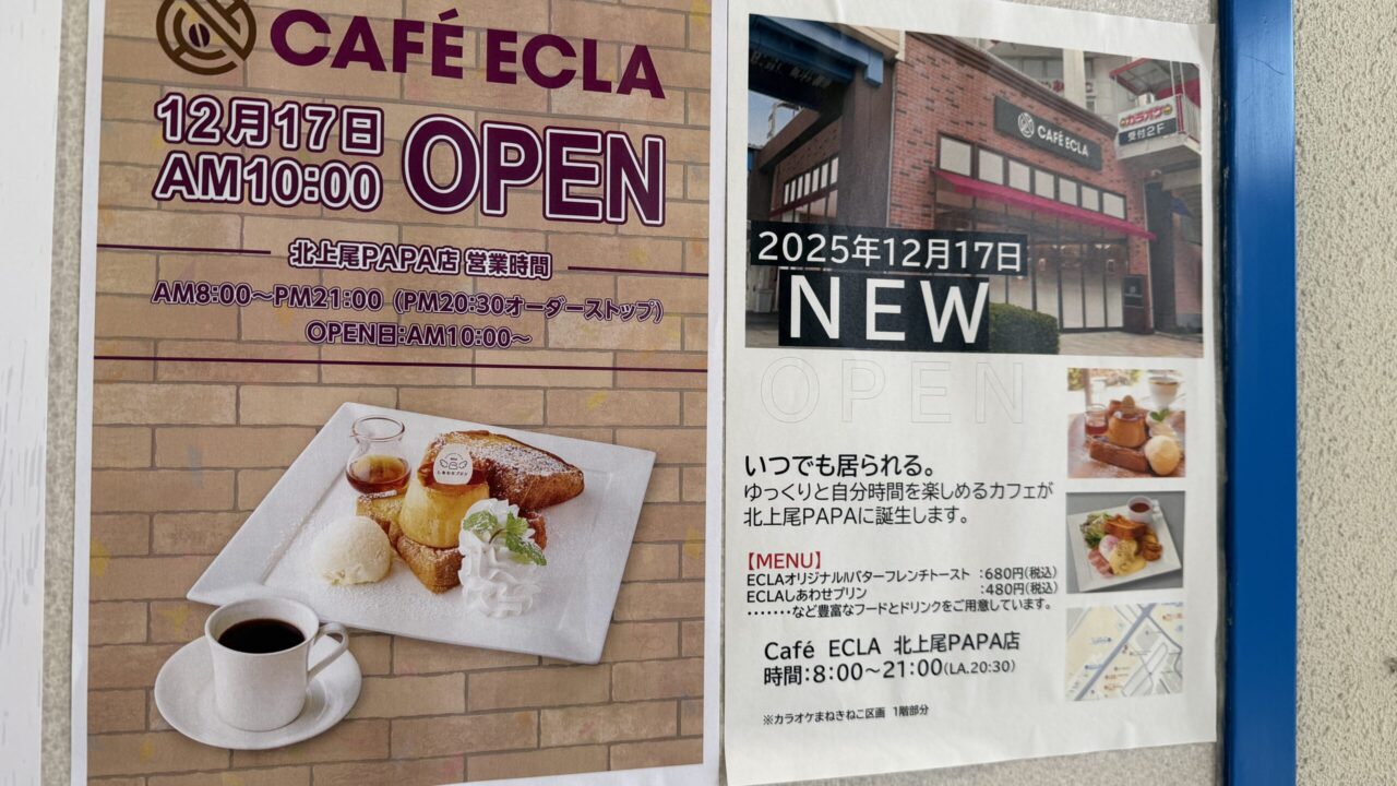「CAFE ECLA (カフェ エクラ) 北上尾PAPA店」が2025年12月17日(水)にオープンします!
