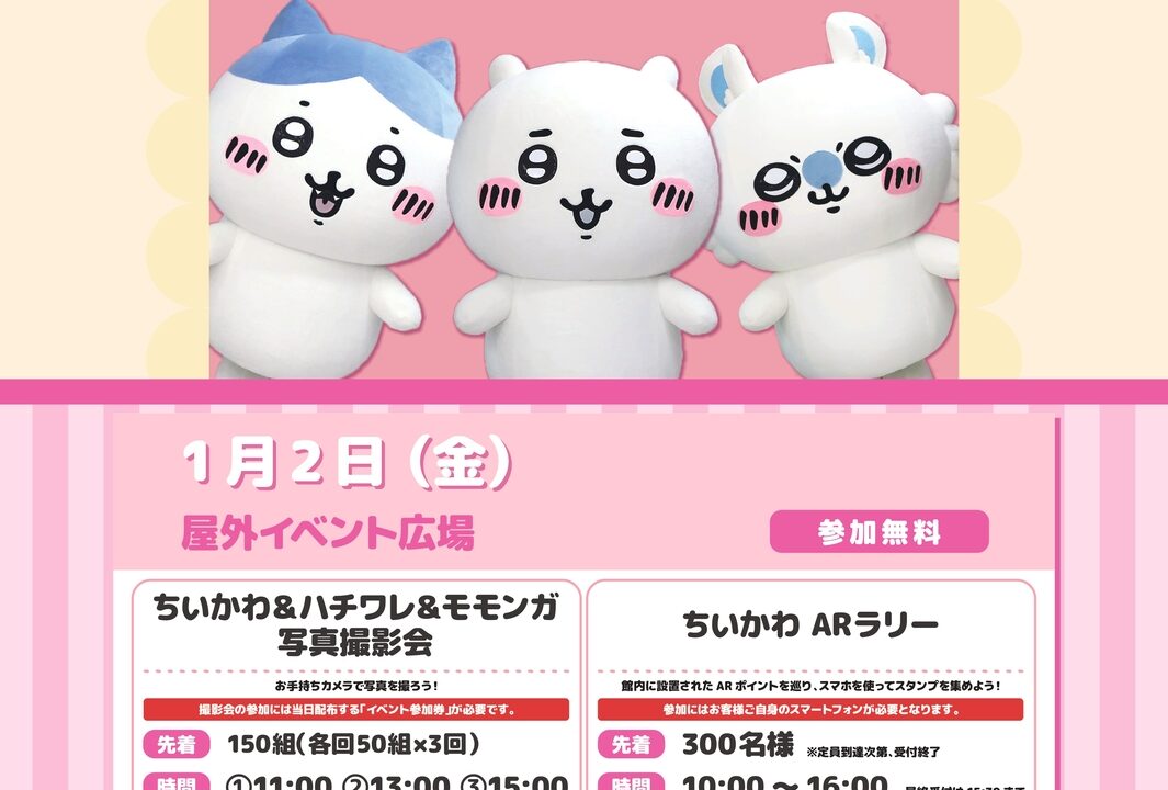 大人気の『ちいかわ&ハチワレ&モモンガ 写真撮影会』と『ちいかわ ARラリー』が開催されます。