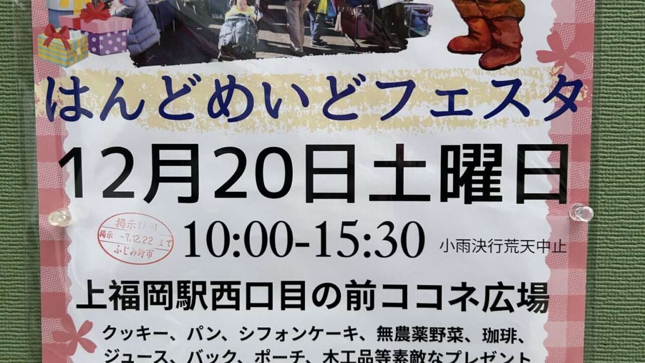 今回は、12月20日に開催される「はんどめいどフェスタ上福岡」の情報です。