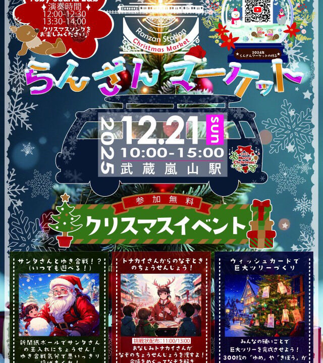 「雪合戦!?新聞紙ボールで玉入れ」「トナカイからの謎解き」「巨大ツリーつくり」などクリスマスを楽しむ参加無料イベントが盛りだくさん!