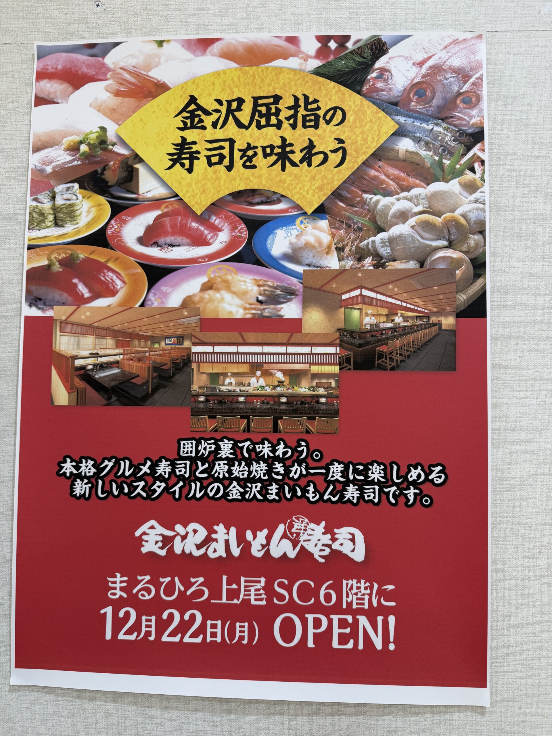 「金沢まいもん寿司 まるひろ上尾SC店」のオープン情報でした♪