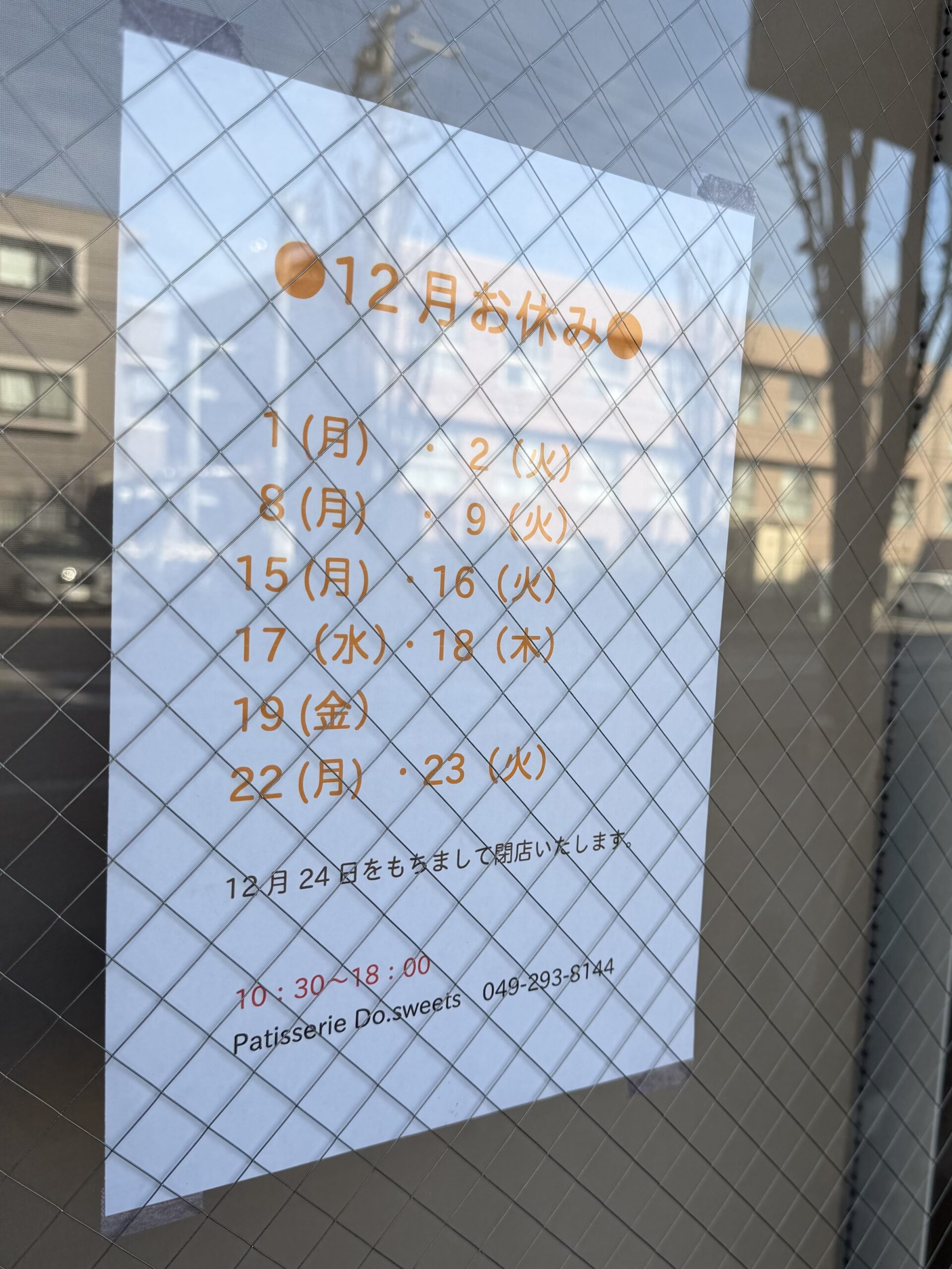 「パティスリードゥ・スイーツ」は2025年12月24日の営業をもって閉店となります。