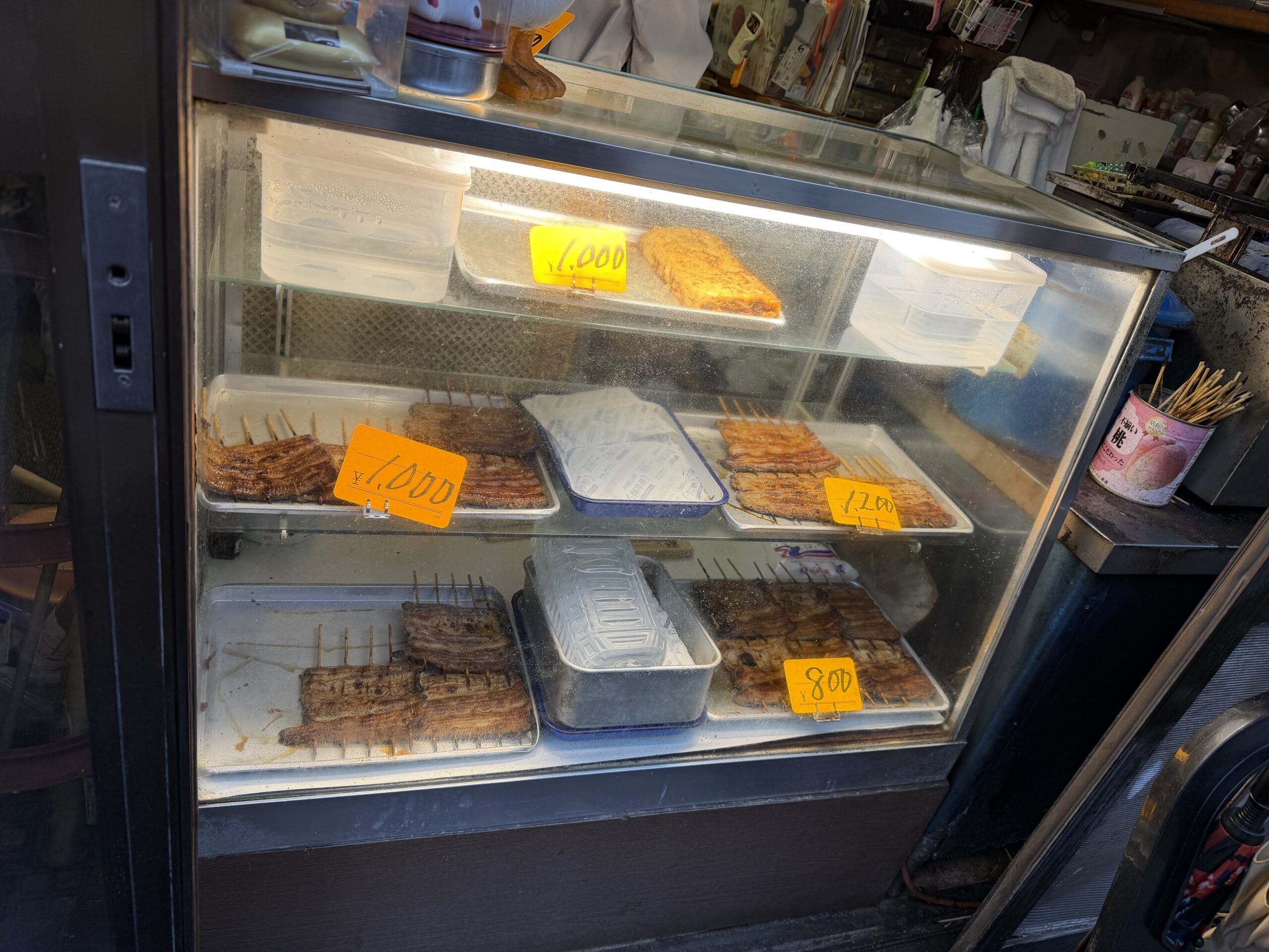 ショーケース内には、800円・1000円・1200円のうなぎが並べられていました!