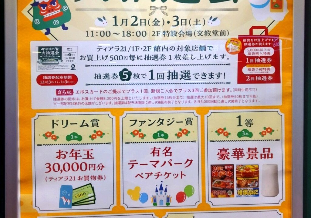 | 開催日 | 抽選券配布/2025年12月13日(土)~2026年1月3日(土) 抽選会当日/2026年1月2日(金)・3日(土) |