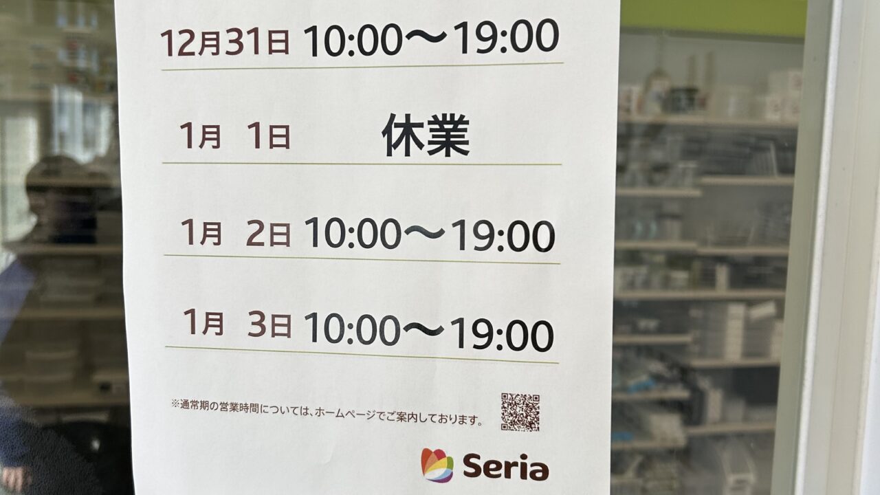 セリアは1月1日が休みになります。