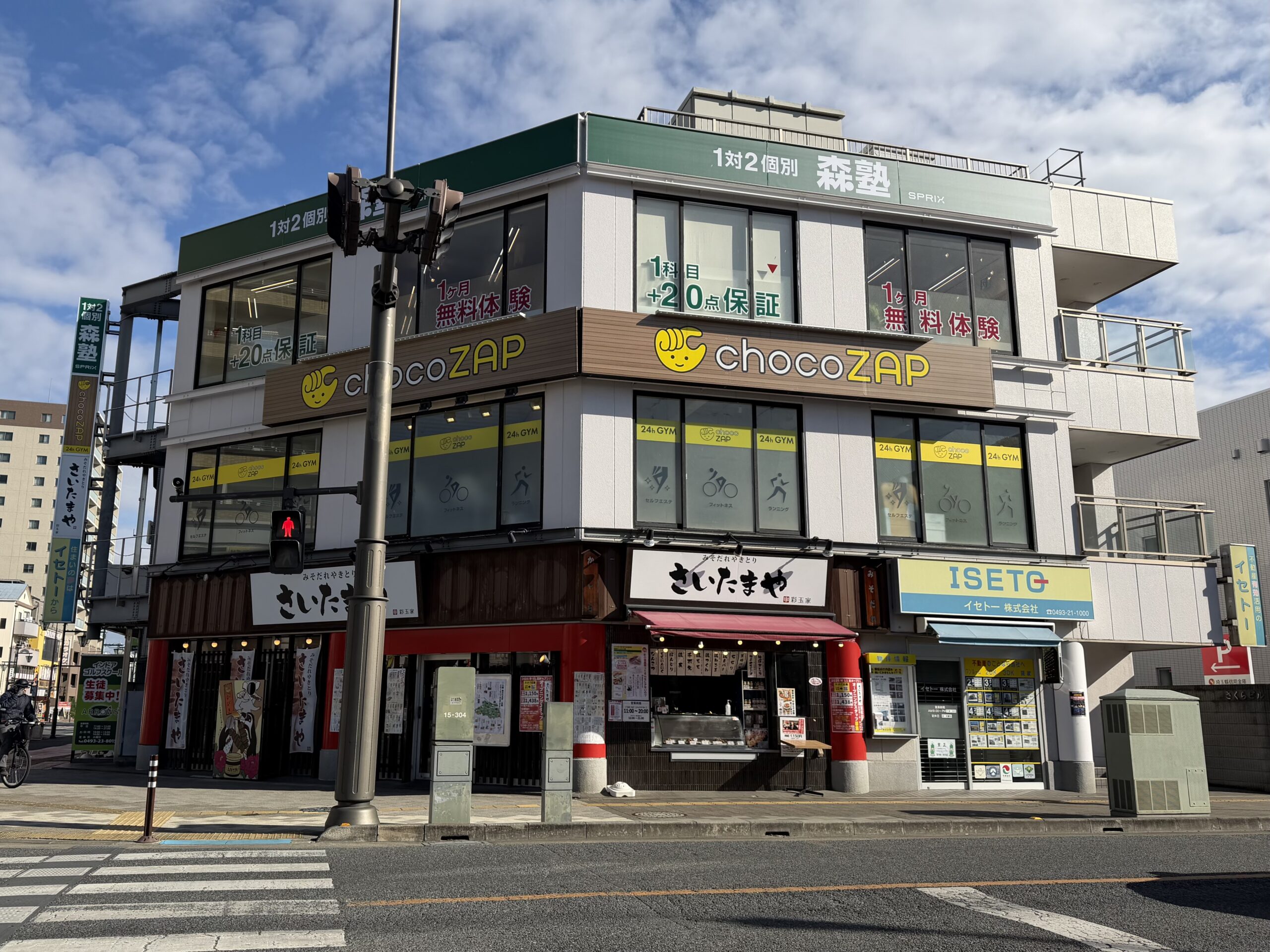 「chocoZAP」や「森塾」が入るビル1階にあります。