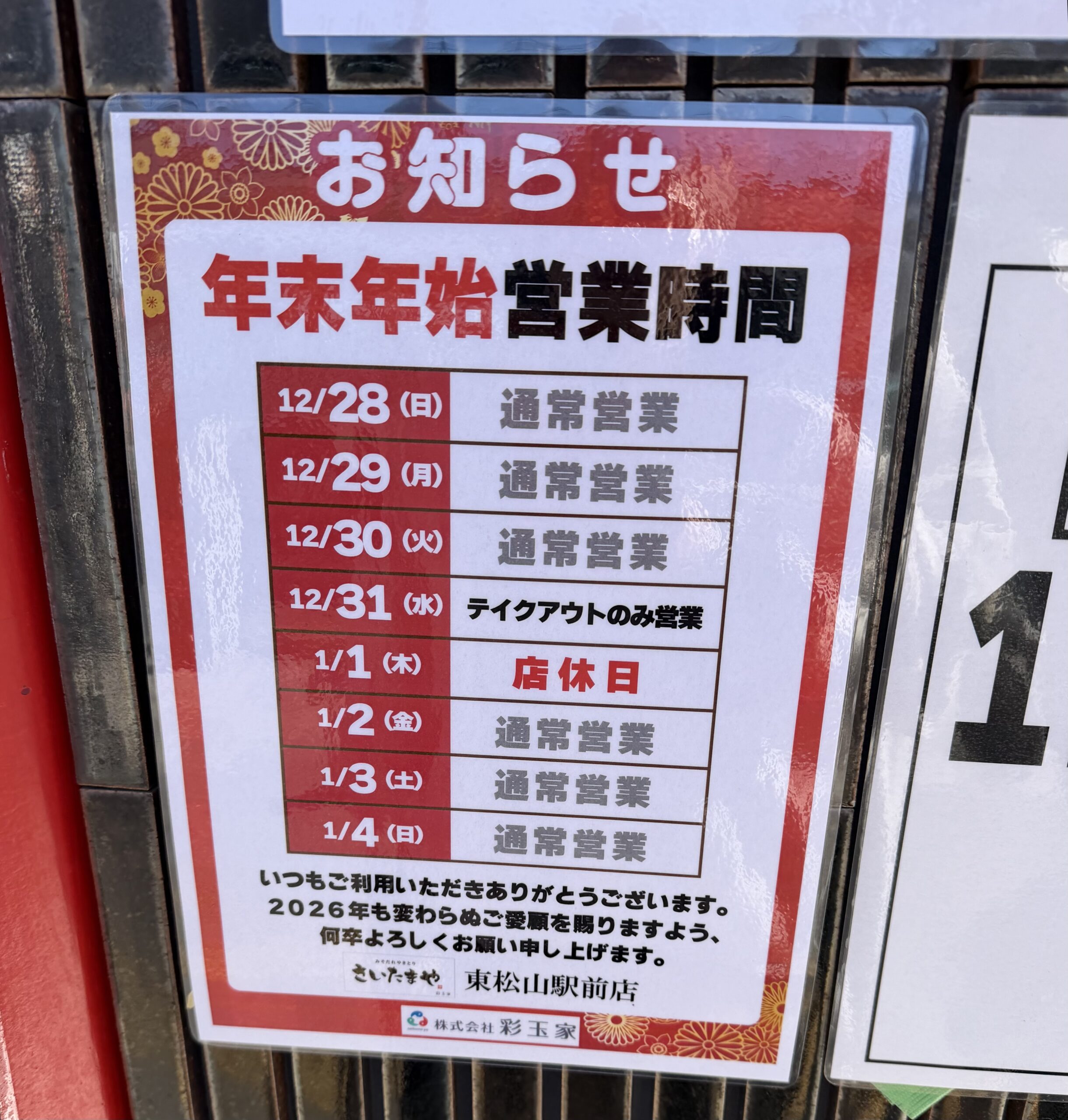 ※1月1日は店休、1月2日より通常営業です。