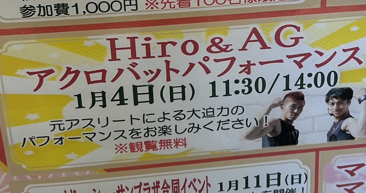 今回は上尾ショーサンプラザでアクロバットパフォーマー『Hiro & AG』によるパフォーマンスショーが開催されるので情報を共有します。