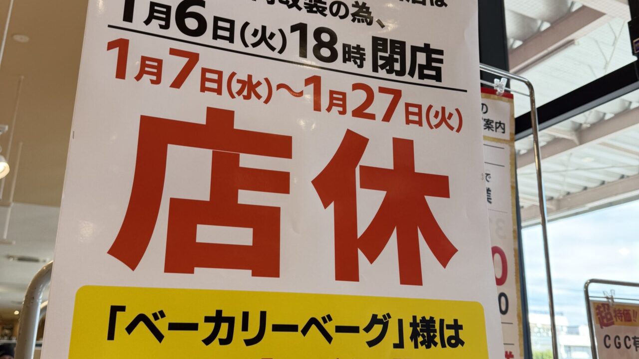 約3週間の店休となるので普段利用されている方はお気を付けください。