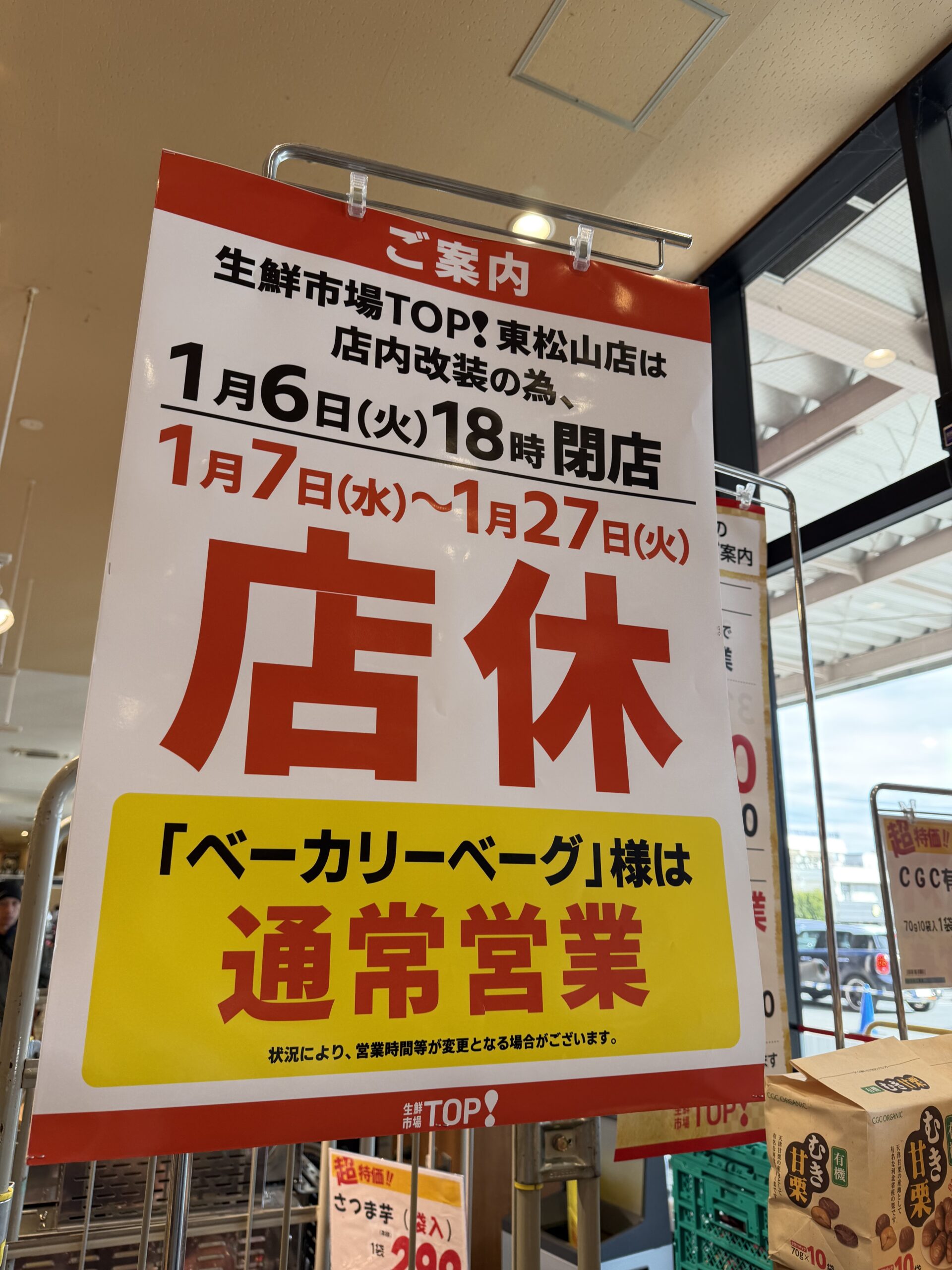 「生鮮市場TOP 東松山店」の一時休業の情報でした。
