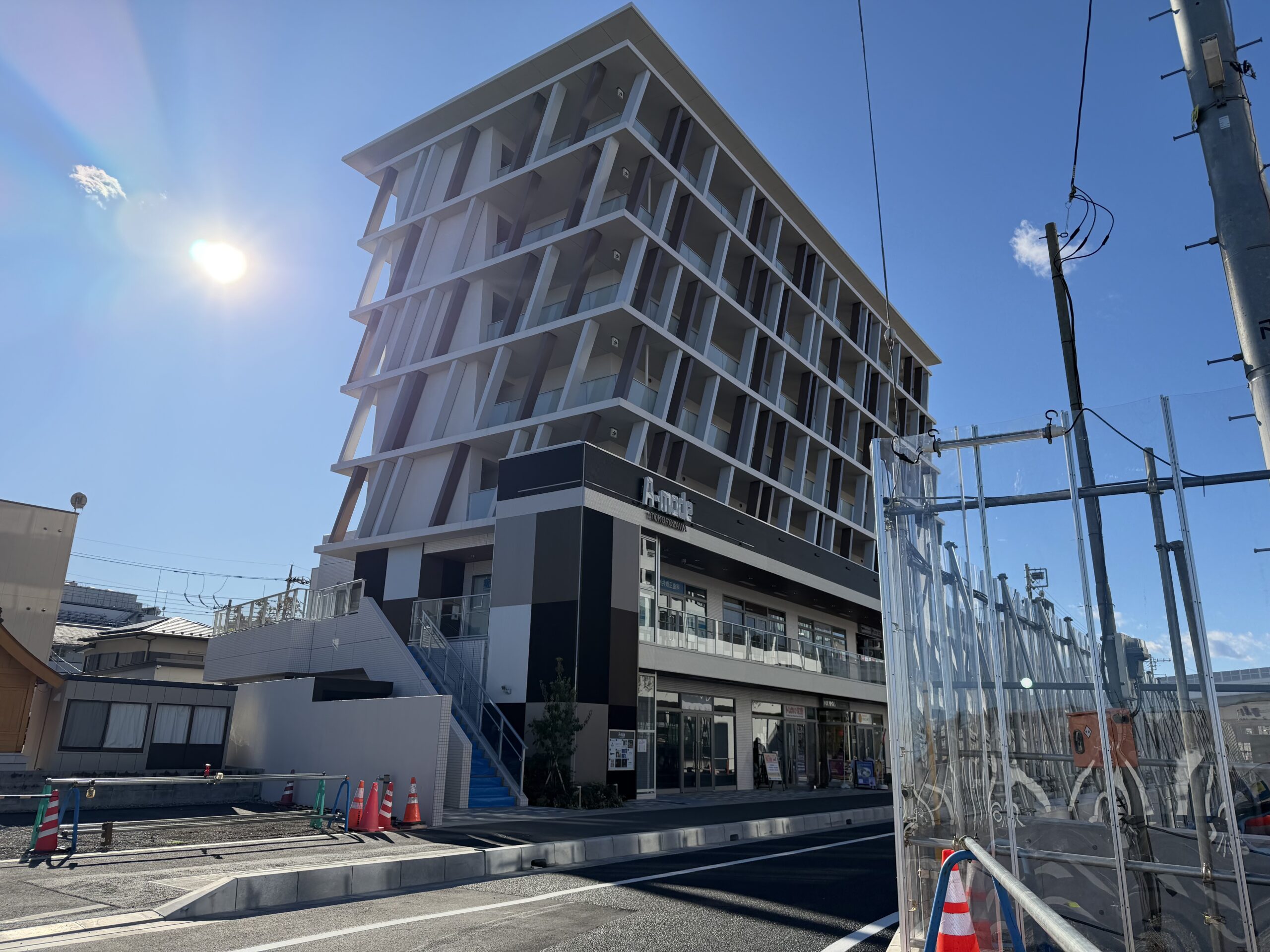 所沢駅ふれあい通り線沿い、おしゃれな建物「A-mode所沢」の2階です。