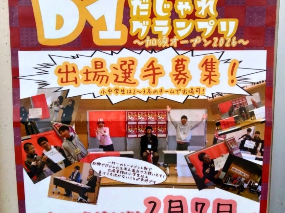 今回は、市民プラザかぞにて開催されるD1だじゃれグランプリ 加須オープン2026の参加者募集or観覧チケット情報をお届けします!