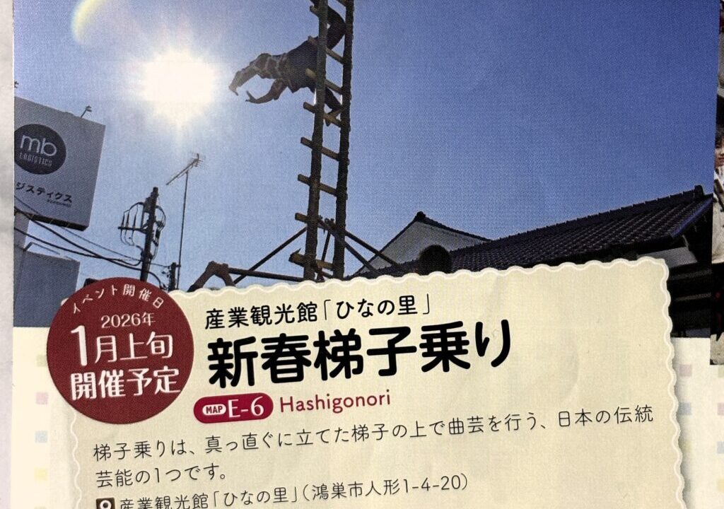 今回は鴻巣市で行われる「新春梯子乗り」の情報です。