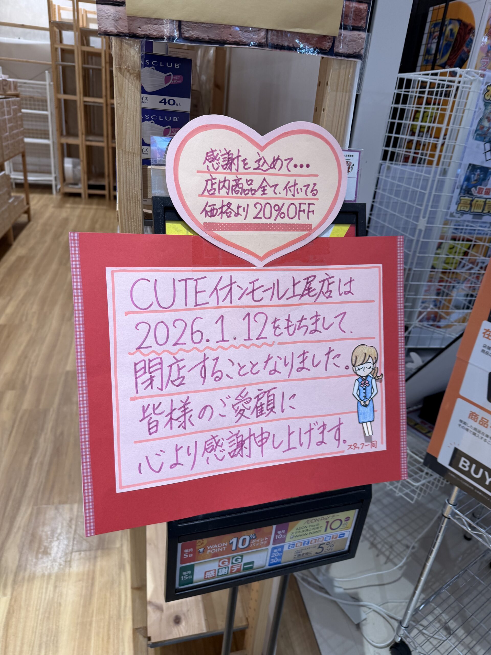 「CUTE」は2026年1月12日(月祝)をもちまして閉店となります。