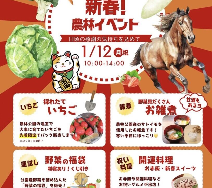 今回は東松山市農林公園で行われる「新春!農林イベント」の情報です。どんなイベントか最後まで見ていってくだいね☆