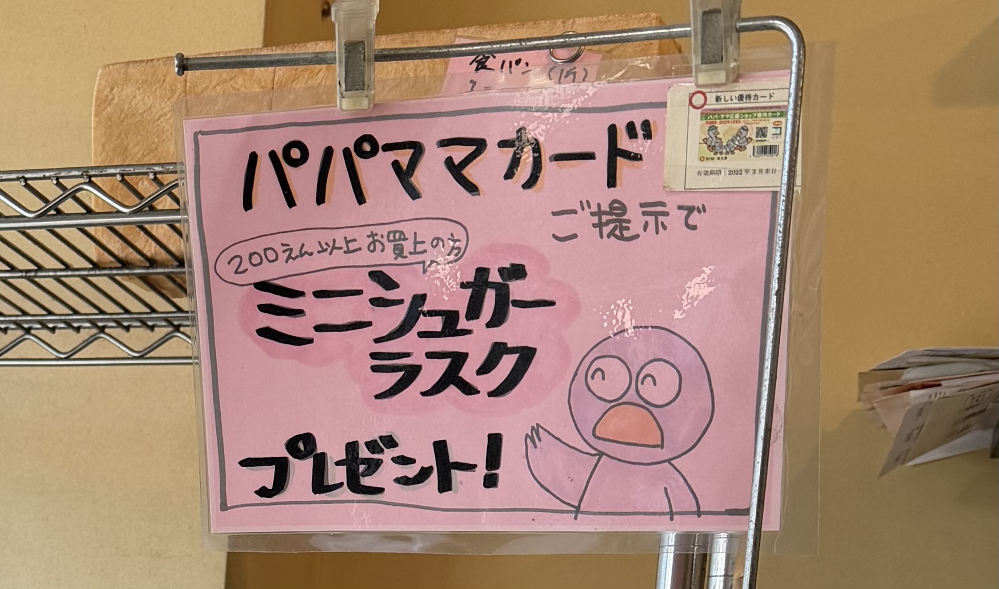 パパママカード提示でミニシュガーラスクプレゼントあり!
