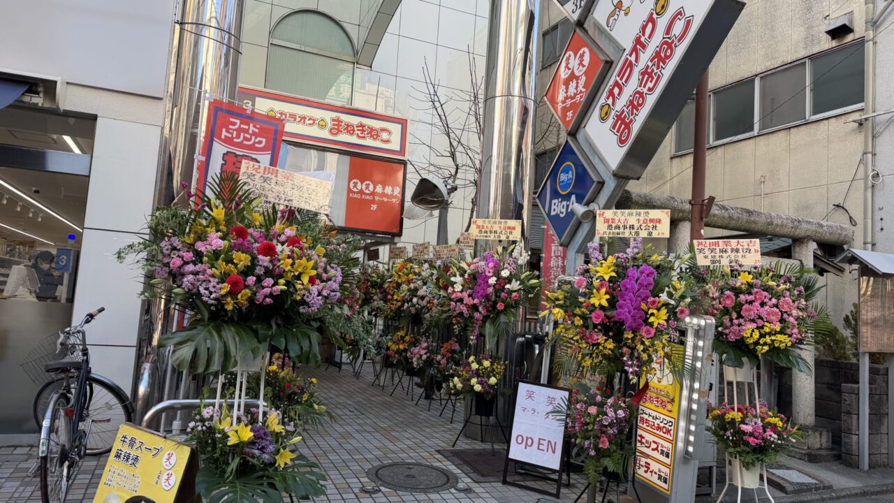 開店祝いのお花がたくさん並べられていました。