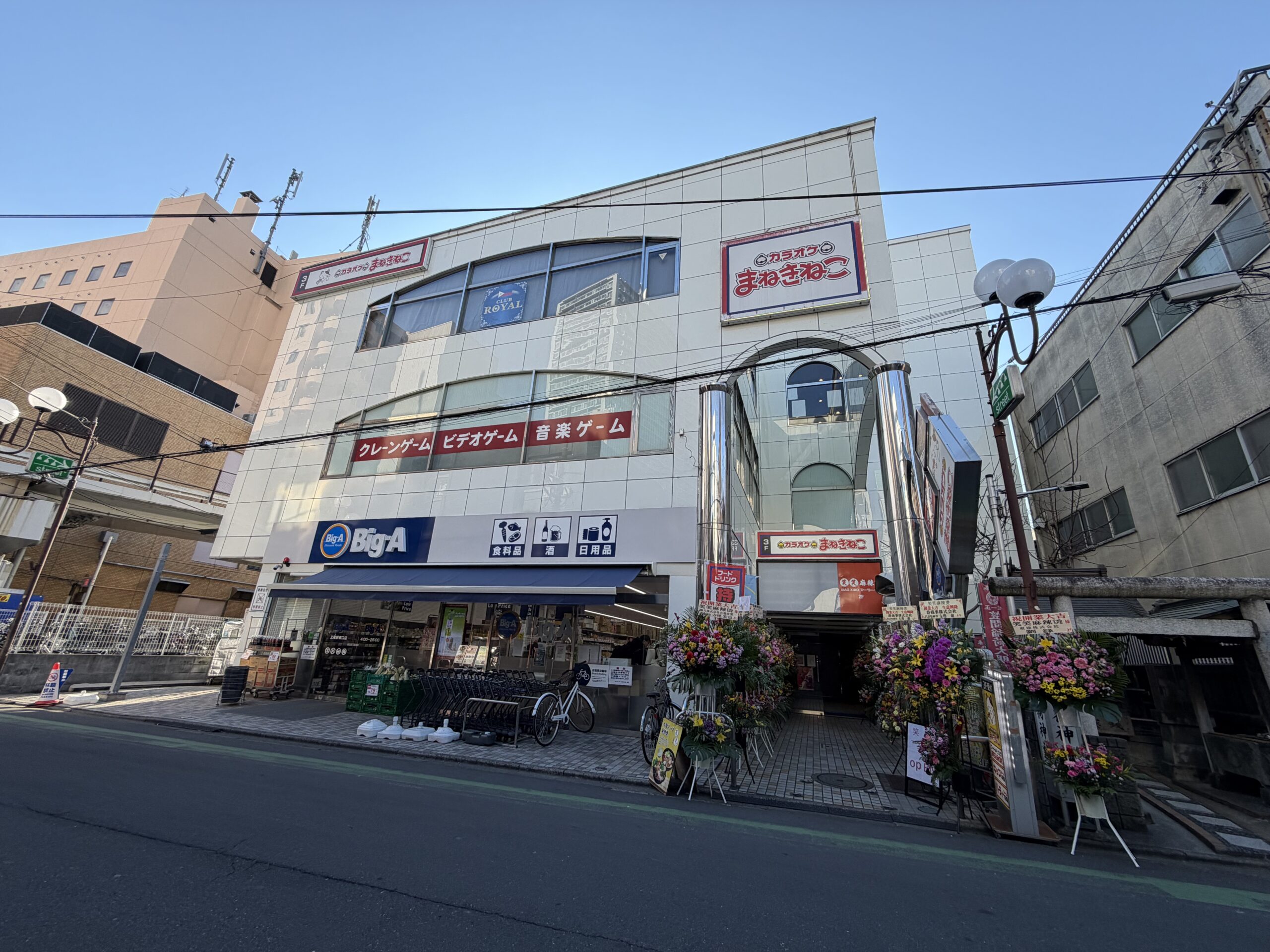 「ビッグ・エー 上尾駅東口店」や「カラオケまねきねこ」が入る上尾プリンスビルの2階にあります!
