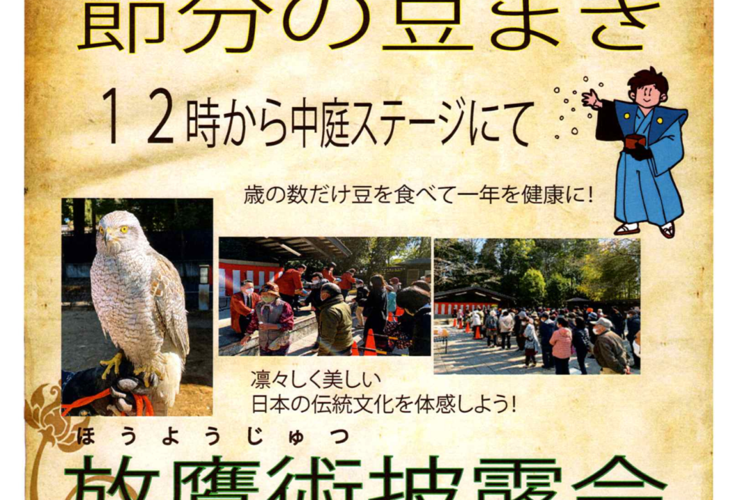 節分の豆まき・放鷹術披露会の情報でした。
