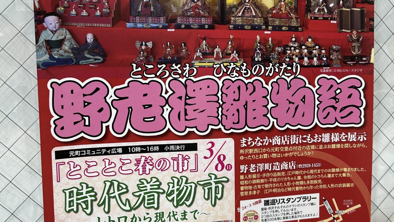 所沢のひな祭り2026『野老澤雛物語』の情報でした。