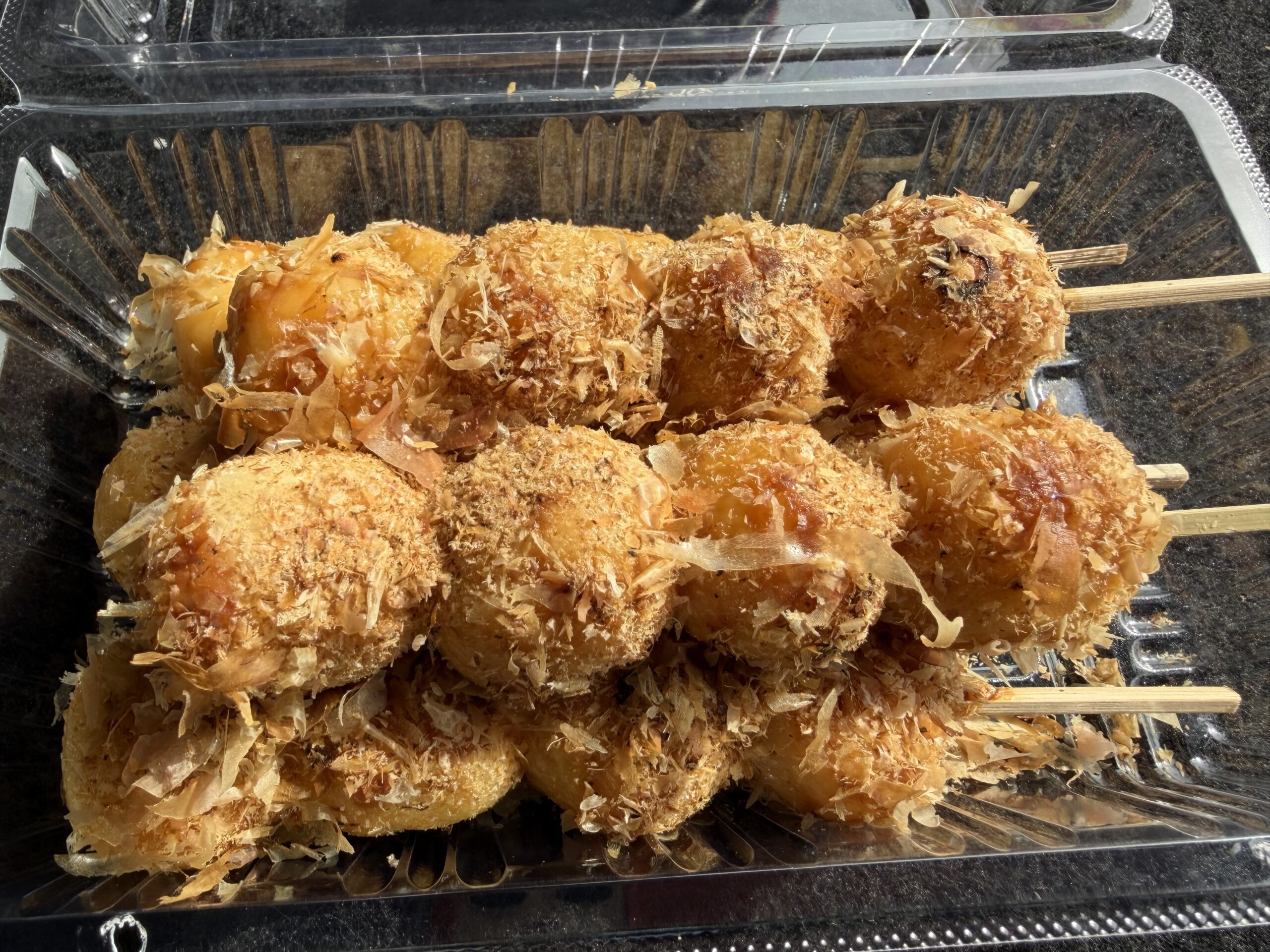 花かつおは、醤油味のおだんごにたっぷりの鰹節がかかっていました。