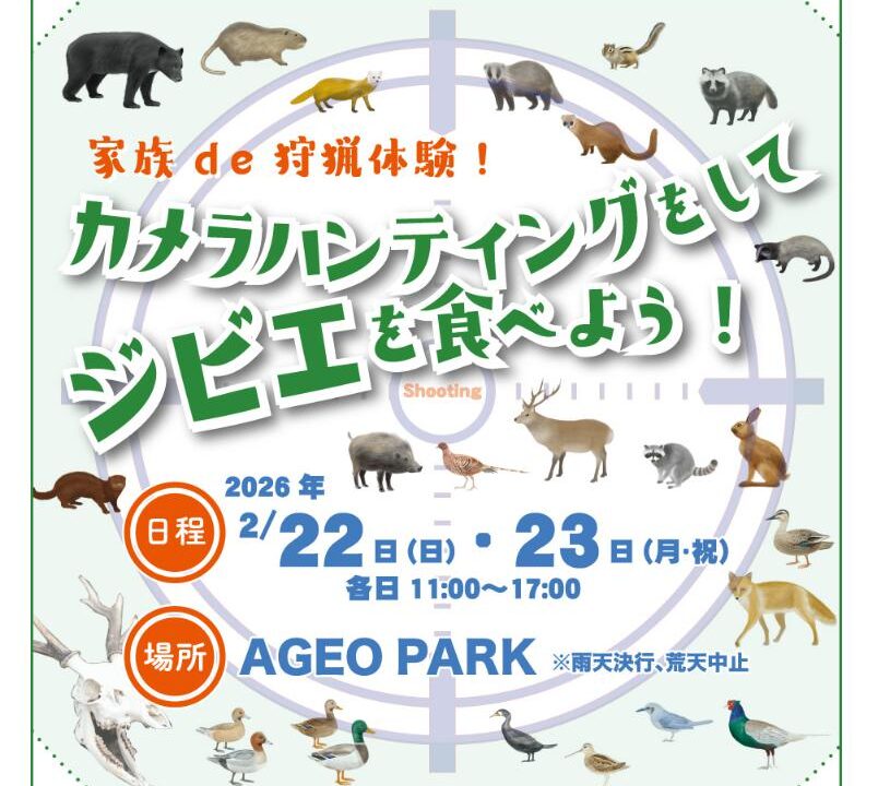 今回はイオンモール上尾で『家族de狩猟体験!カメラハンティングをしてジビエを食べよう♪』イベントが開催されるので情報を共有します。