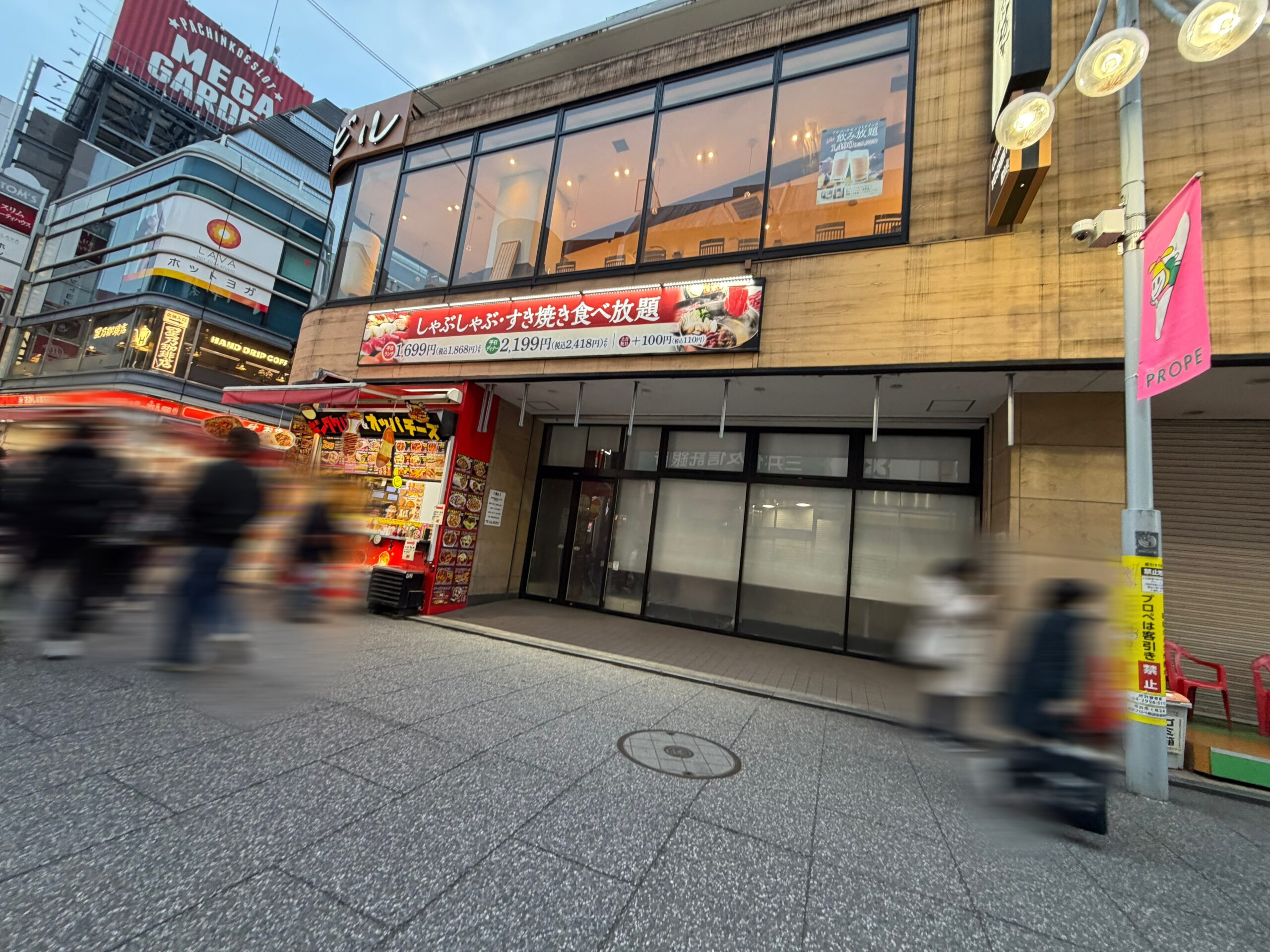 プロぺ通り沿い、「しゃぶ菜 所沢店」が2階にある建物の1階にありました。